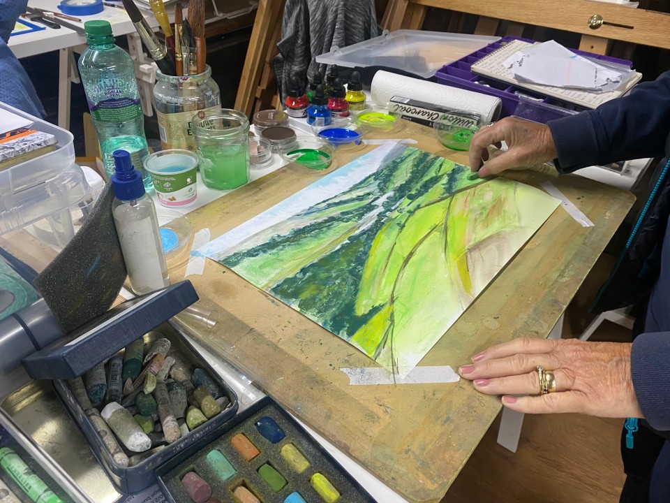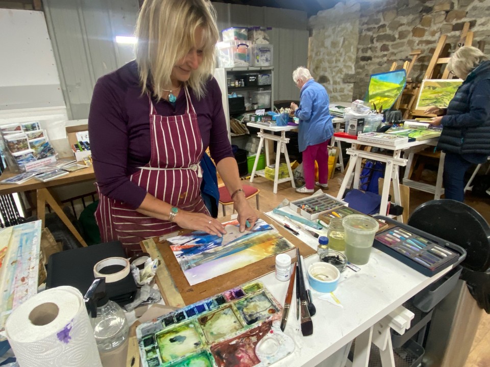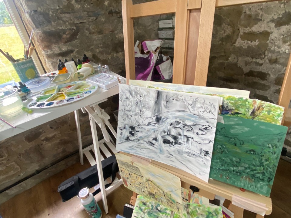 Studio painting day in the barn at Well House Haven, Nidderdale